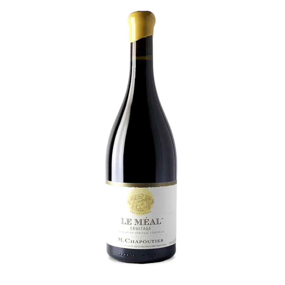| M. Chapoutier Ermitage Le Méal Rouge procede de una ladera cálida a media altura en la colina de Hermitage, donde los cantos rodados y las arenas permiten una maduración óptima de la syrah. Las viejas cepas trabajadas en biodinámico dan rendimientos muy bajos y uvas concentradas que se crían en barrica. En nariz, Le Méal despliega mermelada de mora, cereza negra y arándanos, con notas ahumadas, regaliz, hierbas secas y un toque de piel de naranja. En boca es pleno, sedoso y potente, con taninos maduros y en capas y un final larguísimo. La combinación de riqueza, mineralidad y precisión lo convierte en un gran Hermitage para estofados de ternera, cordero, caza y platos de setas muy sabrosos. | |