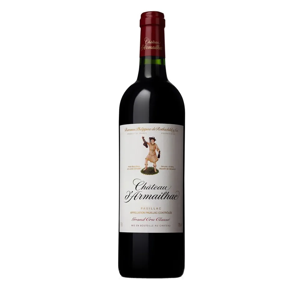 | Château d’Armailhac es un 5ème Grand Cru Classé de Pauillac perteneciente a la familia de Baron Philippe de Rothschild. Sus aproximadamente 70 hectáreas de viñedo se asientan sobre profundos suelos de grava con caliza y están plantadas con Cabernet Sauvignon, Merlot, Cabernet Franc y una pequeña parte de Petit Verdot. Tras la vinificación parcelaria, el vino envejece unos 16 meses en barricas, en buena proporción nuevas. En nariz muestra cassis, moras y cerezas, junto con violetas, grafito, cedro y especias sutiles. En boca Château d’Armailhac es concentrado y sedoso, con taninos maduros, acidez viva y un largo final refinado que refleja el carácter clásico de Pauillac. | |