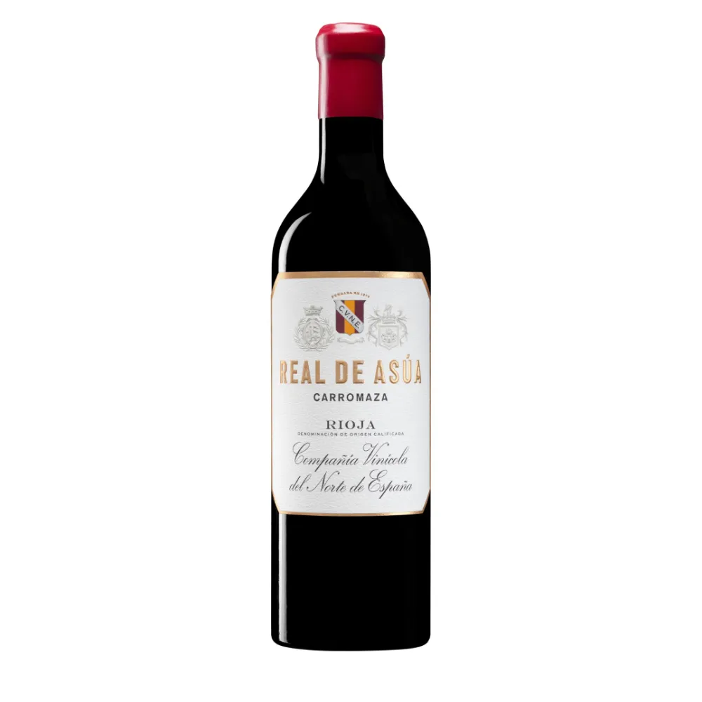 | Real de Asúa de CVNE es un Rioja con mucha personalidad elaborado con uvas del viñedo Carromaza, en altitud en Villalba, Rioja Alta. El paraje disfruta de clima atlántico fresco, suelos arenosos y la protección de la Sierra de Cantabria. Viejas cepas de tempranillo proporcionan uvas concentradas que se crían en barricas de roble francés de alta calidad. En nariz se aprecian arándanos, grosellas rojas y cassis, con regaliz, clavo, toques ahumados y notas de toffee. En boca Real de Asúa es potente pero sedoso, con estructura firme, taninos maduros y acidez vibrante. Su larguísimo final complejo lo convierte en un gran Rioja para cordero, guisos, cortes nobles de vacuno y cocina de autor. | |