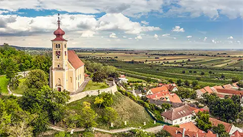 Donnerskirchen, a los pies del Leithagebirge y cerca del Neusiedlersee, se asienta sobre suelos de caliza y pizarra. De allí salen blancos jugosos y Blaufränkisch elegantes, con fondo mineral. El juego entre lago, colinas y viento aporta frescura y tensión. Vinos con fuerte sello de origen y gran disfrute.