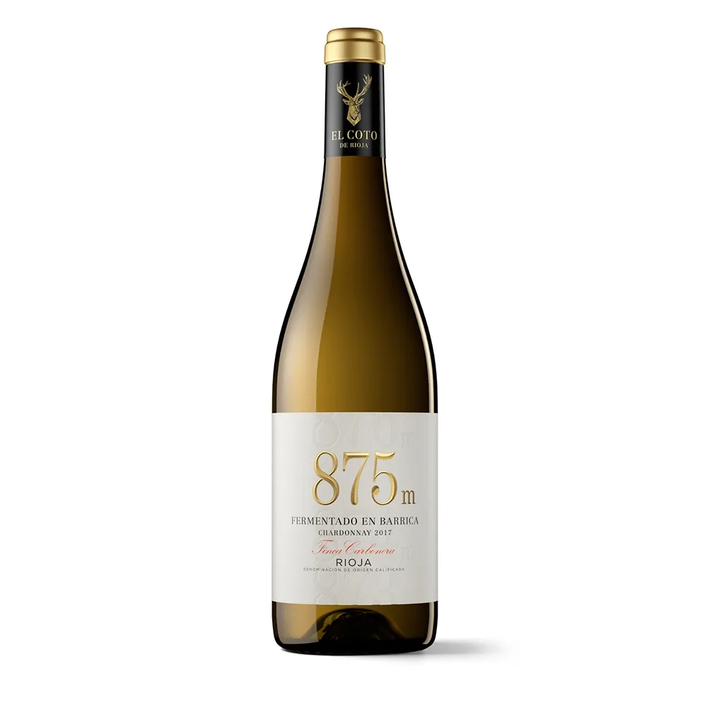 El Coto Rioja Chardonnay 875m Finca Carbonera procede de uno de los viñedos más altos de Rioja y fermenta en barrica. La altitud de 875 metros aporta noches frescas que conservan acidez y aromas. En nariz destacan limón, manzana verde y notas de melocotón, con matices de fruta tropical madura, vainilla y madera fina. En boca es cremoso pero fresco, con buena tensión, mineralidad salina y un final largo y elegante. Acompaña muy bien pescados, mariscos, arroces cremosos y aves con salsas suaves. Servido bien frío, funciona tanto en comidas elegantes como en reuniones informales entre amigos.
