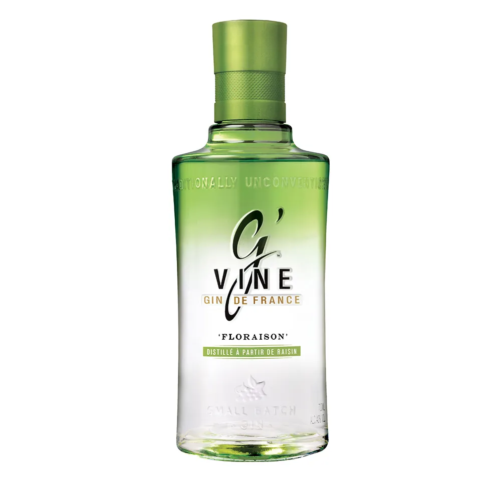 G'Vine Floraison es una ginebra francesa premium elaborada con alcohol de uva e infusionada con flores de vid de la región de Cognac. En nariz aparecen notas perfumadas de uva, flores blancas, lima, cardamomo y un toque de jengibre. En boca la ginebra resulta suave, floral y muy fresca, con jugosa fruta de uva, cítricos vivos y enebro delicado. Una ligera dulzura y un final especiado y mineral la hacen perfecta para Gin Tonics refrescantes o cócteles de corte floral. La edición con motivo de hojas de vid y vaso a juego realza la imagen moderna y elegante de la marca.