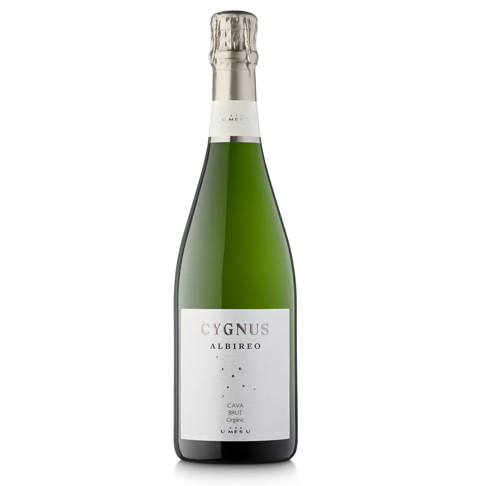 | Cygnus Albireo Brut de U Mes U es un cava ecológico del Penedès que toma su nombre de la estrella Albireo. El coupage de Xarel·lo, Macabeo y Parellada permanece varios meses sobre sus lías. En nariz aparecen aromas de limón, manzana verde y fruta blanca, junto a notas de flores de primavera y un ligero toque de brioche. En boca el cava resulta fresco y vibrante, con burbuja fina, acidez equilibrada y sutiles notas de crianza en un final largo y nítido. La combinación de fruta primaria, complejidad discreta y grado alcohólico moderado lo convierte en un aperitivo perfecto y en un acompañante versátil para tapas, verduras y aves. Un cava con personalidad que une cultivo ecológico e identidad regional con buena bebilidad. | |
