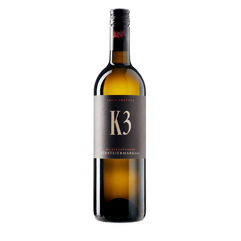 | K3 Weissburgunder von Ewald Zweytick ist ein Lagenwein aus drei Kogeln rund um Ratsch in der Südsteiermark und zählt zu den Aushängeschildern des Weinguts. Die Reben wachsen auf kalkreichen Opok- und Schotterböden, ausgebaut wird im gebrauchten Barrique. In der Nase zeigen sich gelber Apfel, Birne, etwas Steinobst und dezente Nuss- und Röstanklänge. Am Gaumen präsentiert sich der Wein trocken, dicht und zugleich ungemein fein strukturiert, mit eleganter Säure und cremiger Textur. Die Mineralität verleiht kühlen Druck und sorgt für ein langes, harmonisches Finale. Ein vielseitiger Weißburgunder, der zu Fisch, Geflügel, Risotto, Pasta oder feinen Gemüsegerichten hervorragend passt. | |