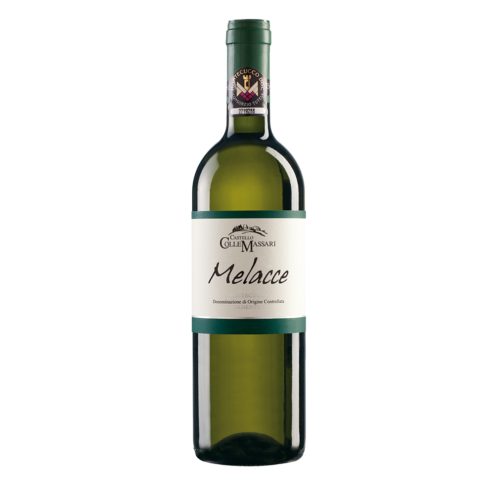 Melacce Montecucco Vermentino de Colle Massari est un blanc vif et aromatique issu des pentes du Monte Amiata, en Toscane méridionale. Les vignes de vermentino, conduites en agriculture biologique, s’enracinent dans des sols calcaires et schisteux tournés vers la mer Tyrrhénienne. Les raisins sont pressés en douceur puis fermentés à basse température en cuves inox afin de préserver la pureté du fruit. Le nez évoque pomme verte, pêche blanche et citron vert, avec des notes florales, herbacées et une touche exotique. En bouche, Melacce se montre croquant, sec et minéral, porté par une acidité vive et une texture soyeuse. Sa finale fraîche et citronnée en fait un compagnon idéal de l’apéritif, des poissons, des fruits de mer et des entrées méditerranéennes.