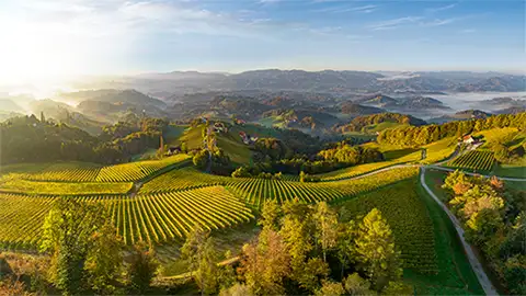 Eichberg, in Südsteiermark, è caratterizzato da pendii ripidi e bianchi aromatici. Protagonisti Sauvignon Blanc e Moscato, profumati e vivaci. I vini uniscono freschezza e spezie fini e sono perfetti per l’estate. Interpretazione molto tipica della Stiria meridionale.