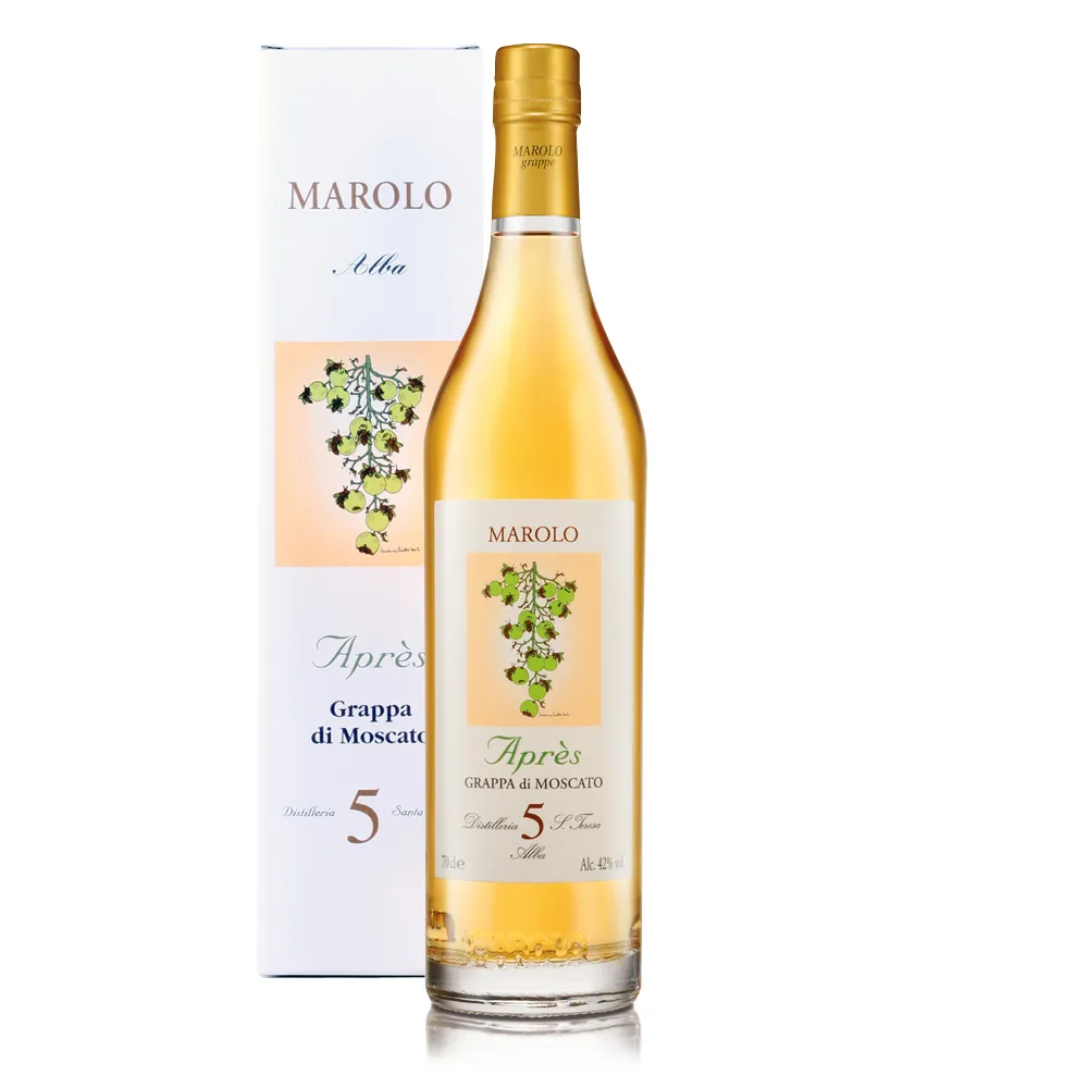 Marolo Aprés Grappa di Moscato 5 anni Invecchiato 42% 0,7l in scatola regalo