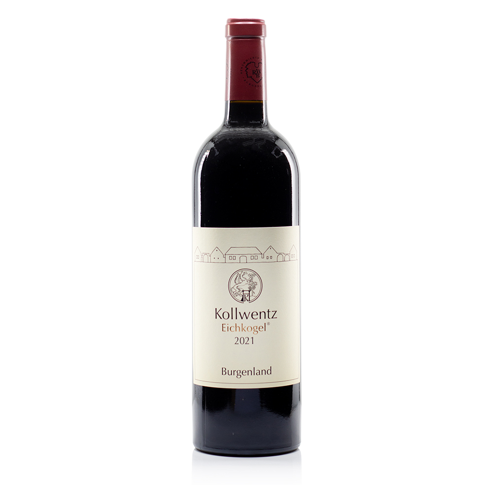 Eichkogel vom Weingut Kollwentz ist eine Cuvée aus den Großhöfleiner Traditionssorten Blaufränkisch und Zweigelt vom Südhang des Leithagebirges. Die Trauben stammen aus warmen Lagen wie Point und Setz sowie der kühleren Ried Neusatz und werden selektiv von Hand gelesen. Nach langer Maischegärung reift der Wein in kleinen Eichenfässern, was ihm Struktur und feine Würze verleiht. In der Nase zeigt er dunkle Beeren, Kirsche, ein Hauch Zwetschke und dezente Röstnoten. Am Gaumen präsentiert sich Eichkogel druckvoll, saftig und doch elegant, mit reifem Tannin und frischer Säure. Der lange, würzige Abgang macht ihn zum idealen Begleiter für Lamm, Rind vom Grill oder herzhafte Schmorgerichte.