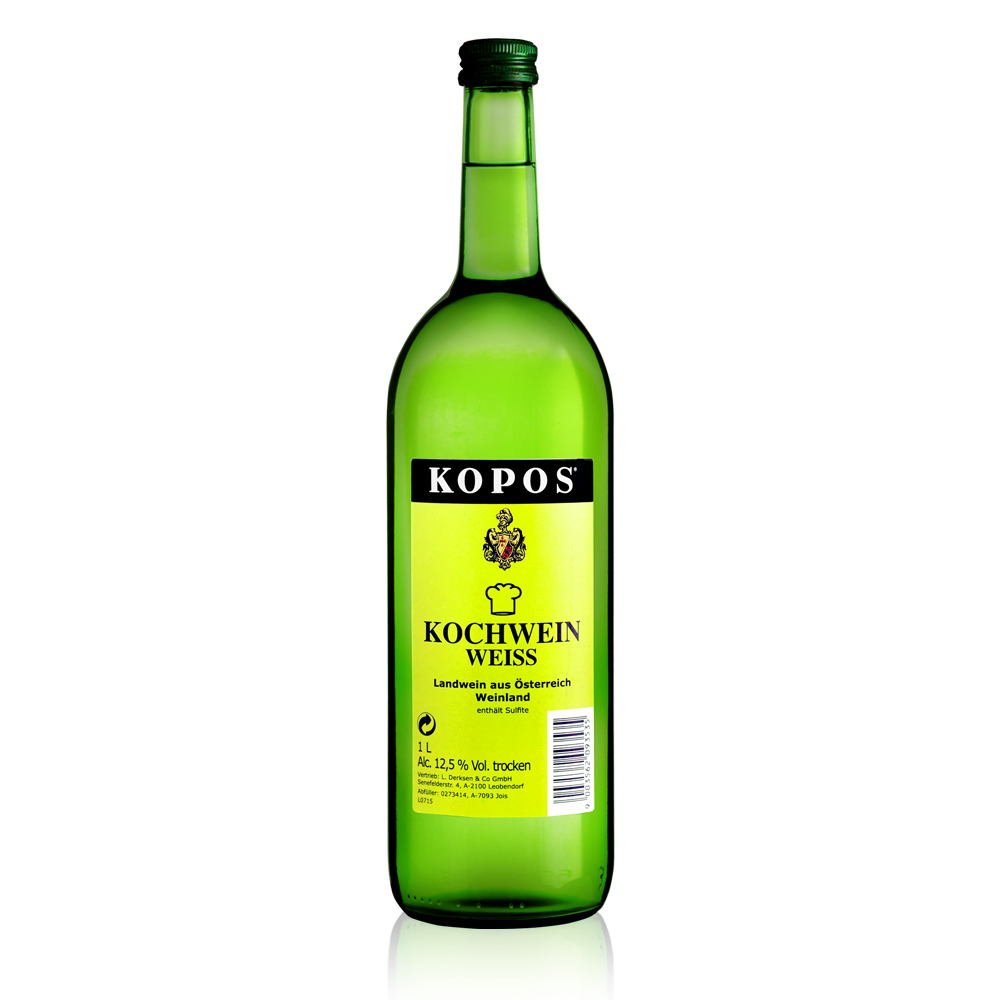 | KOPOS Weißwein ist ein trockener Kochwein aus Österreich und wird ausschließlich aus Grüner-Veltliner-Trauben hergestellt. Der klare, frische Stil bringt Zitrusfrucht, grünen Apfel und eine leichte Pfefferwürze ins Glas. Am Gaumen zeigt er sich trocken, geradlinig und angenehm unkompliziert, mit animierender Säure und schlankem Körper. Durch diese neutrale, aber charaktervolle Art eignet er sich ideal zum Verfeinern von hellen Saucen, Suppen und Gemüsegerichten. Besonders beliebt ist KOPOS Weißwein etwa für Spargelcremesuppe, Risotto oder zum Ablöschen von Geflügel. Auch als schlichter Tischwein zur Hausmannskost macht er eine gute Figur. | |