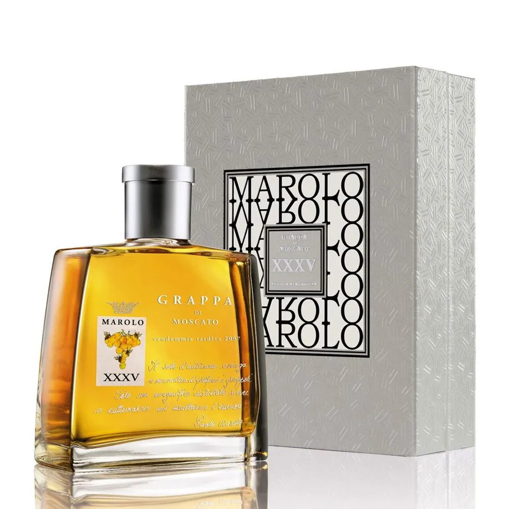 Marolo Anniversario Grappa di Moscato Vendimia Tardiva Invecchiato 42% 2010 0,7l en caja regalo
