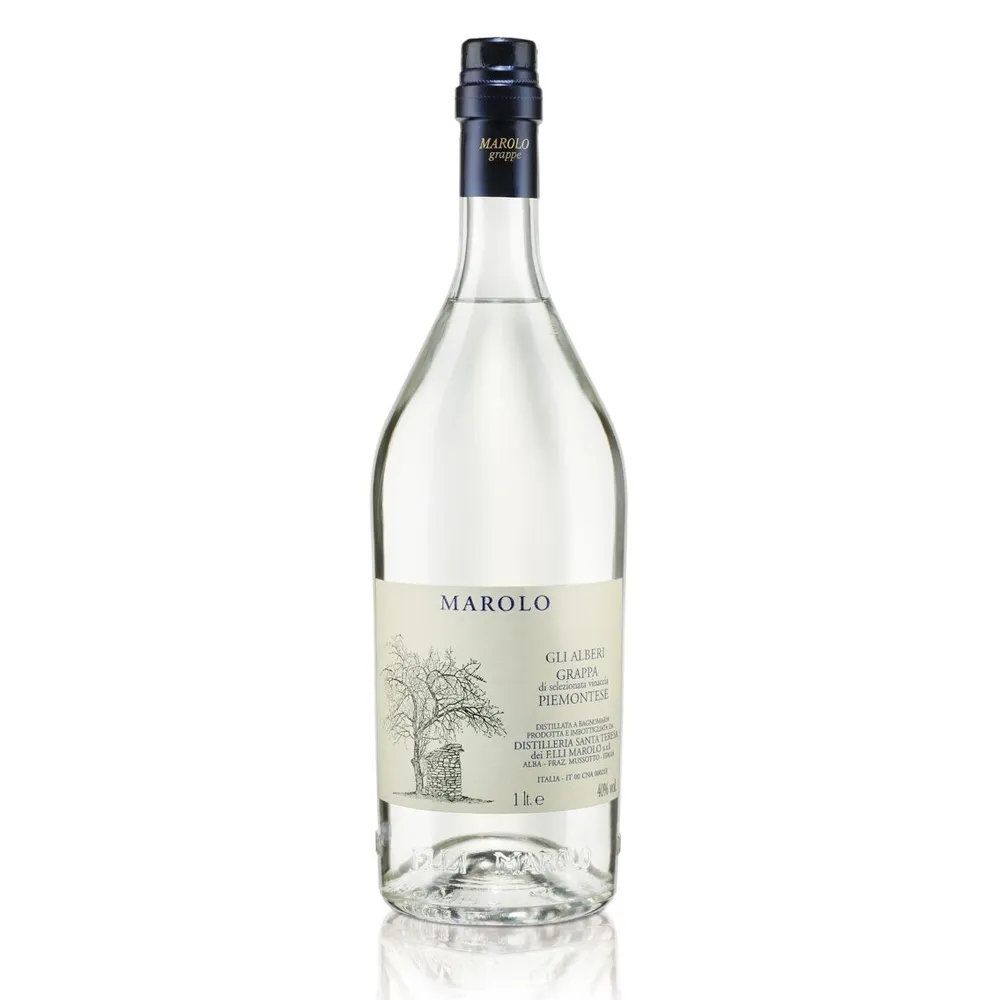 La Grappa Gli Alberi de Marolo es un coupage de distintas variedades del Piamonte que se cría en depósitos de acero inoxidable. El destilado se presenta límpido y con una nariz intensa pero muy limpia. Destacan la fruta clara, sutiles notas florales y una especia fina que mantiene el perfil ligero. En boca la grappa resulta suave, equilibrada y armoniosa, con buena correspondencia entre aroma y sabor. La estructura es esbelta y muy bebible, y el final aparece nítido y refrescante. Una grappa todoterreno, perfecta como digestivo informal o junto a un espresso.