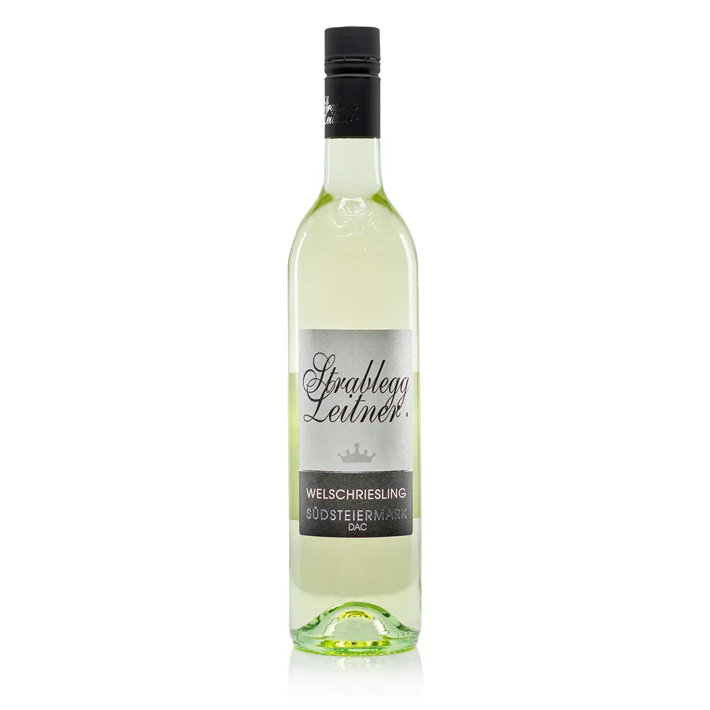Strablegg-Leitner Welschriesling DAC zeigt die frische, trinkanimierende Seite der Südsteiermark. Die Trauben stammen aus kühlen Hanglagen und werden im Stahltank ausgebaut, um Frucht und Klarheit in den Mittelpunkt zu stellen. In der Nase duftet der Wein nach grünem und gelbem Apfel, Zitrusfrüchten und feinen Wiesenkräutern. Am Gaumen wirkt der Welschriesling elegant, feingliedrig-trocken und sehr fruchtbetont, mit typisch steirischer Apfelfrucht. Die lebendige Säure sorgt für enormen Trinkfluss, ohne je spitz zu wirken. Der geradlinige, klar erfrischende Abgang macht ihn zum idealen Alltagswein zu Salaten, kalten Platten, leichten Fischgerichten oder einfach als kühlen Schluck zwischendurch.