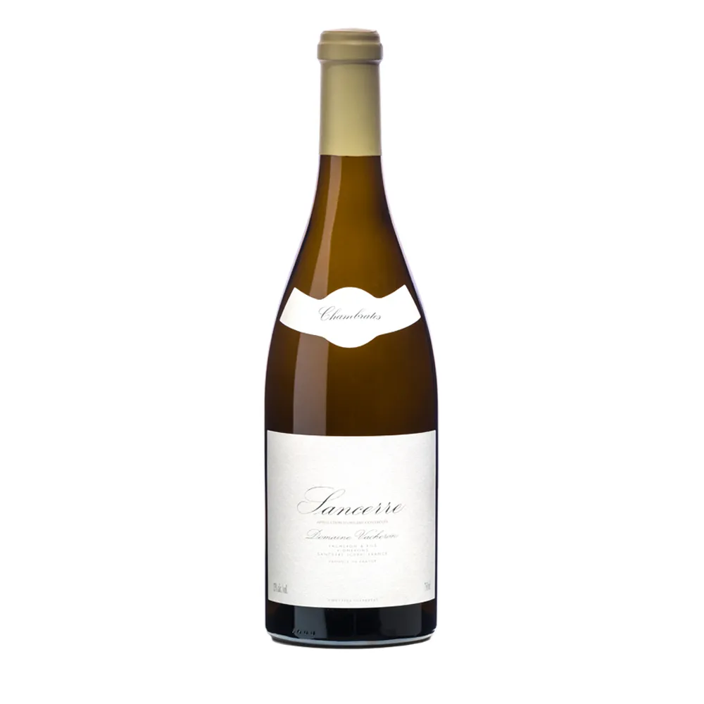 Sancerre Chambrates blanc von Domaine Vacheron stammt aus einer biodynamisch bewirtschafteten Einzellage mit Kalk- und Rotlehmböden auf rund 350 Metern Höhe. Im Glas zeigt der Sauvignon Blanc ein helles, glänzendes Goldgelb. In der Nase verbinden sich Zitrone, Kumquat und Aprikose mit grünem Apfel, Stachelbeere, Jasmin, Kräutern und einem Hauch Ingwer. Am Gaumen wirkt Chambrates dicht und elegant, mit saftiger Frucht, straffer Säure und ausgeprägter, salziger Mineralität. Die Textur ist seidig, fast cremig, getragen von feinen Holznoten und einem langen, kreidig-rauchigen Nachhall. Ein großer, lagerfähiger Sancerre blanc, der hervorragend zu edlem Fisch, Krustentieren, feiner Gemüseküche oder Geflügel in heller Sauce passt.